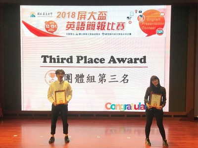 賀!應用外語系榮獲「2018屏大盃英語簡報比賽」團體組第三名