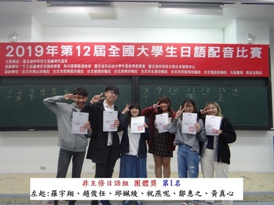 恭賀!本校師生榮獲「2019第十二屆全國大學生日語配音比賽」冠軍、季軍等九個獎項