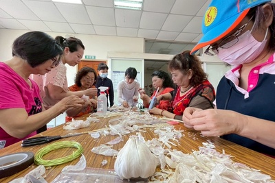 虎科大USR團隊攜手水井社區 農廢蒜皮變身母親節盆花