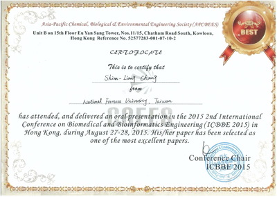 賀!!動機系張信良教授榮獲香港"2015 2nd International Conference on Biomedical and Bioinformatics Engineering" 國際研討會最佳論文獎!